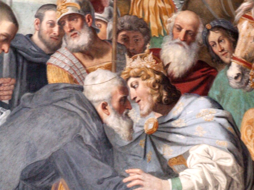 Otto III. (geboren 980) war nach dem überraschenden Tod seines Vaters Otto II. bereits mit drei Jahren zum deutschen König gewählt worden. Für ihn übte jedoch seine Mutter Theophanu, eine gebildete byzantinische Prinzessin die Herrschaft aus. Keine schlechte Zeit, denn Theophanu wählte statt des Krieges das Mittel der Diplomatie zum Instrument ihrer Macht. Sie arrangierte sich dabei mit ihrer Schwiegermutter Adelheid, die nach dem frühen Tod Theophanus allein als Kaiserin regierte, bis mit 14 Jahren Otto für volljährig erklärt wurde. Adelheid war in erster Ehe mit dem letzten italienischen König Berengar und in zweiter Ehe mit Kaiser Otto I. verheiratet und gab so Otto III. den Anspruch auf beide Kronen mit in die Wiege. Bereits 996 begab sich Otto III. auf die Reise nach Rom um sich zum Kaiser krönen zu lassen. Doch auf dem Weg dorthin erfuhr er, dass der Papst, der die Krönung vornehmen sollte, verstorben war. Kurzerhand erklärte er in Ravenna seinen Verwandten Bruno von Kärnten zum neuen Papst Gregor V.. Ein unerhörter Vorgang, denn bisher hatten die Römer ihren Bischof immer selbst gewählt. Gregor V., mit 24 kaum älter als Otto und einer der jüngsten Päpste der Geschichte, krönte seinen Cousin bei der Ankunft in Rom sogleich zum Kaiser. Doch als der frischgebackene Monarch wieder abzog musste Gregor auch aus Rom fliehen. Die römischen Adelsfamilien kürten Johannes XVI. zu ihrem Papst. Als Otto im Februar 998 nach Rom zurückkehrte übte er blutige Rache. Dem Gegenpapst wurden Ohren, Nase, und Zunge abgeschnitten und die Augen ausgestochen. So verstümmelt wurde er auf einem Esel durch Rom geführt. Auch im ansonsten nicht zimperlichen Mittelalter erregte dieses brutale Vorgehen großen Protest. Auf Intervention des Heiligen Nilus von Rossano durfte Johannes immerhin sein Leben in einem Kloster fristen. Er überlebte dort Gregor V., der bereits im folgenden Jahr eines sicher nicht natürlichen Todes starb. Und wieder ernannte Otto einen Ausländer zum Papst, seinen Lehrer und Vertrauten, dem gelehrten französischen Mathematiker Gerbert von Aurillac, der als Silvester II. den apostolischen Stuhl bestieg. Der Wissenschaftler erwarb sich schnell den Ruf eines Hexenmeisters, der mit dem Teufel im Bund sei, dabei war er ein Wegbereiter der modernen Mathematik. Silvester überlebte den Kaiser nur um ein Jahr und wurde in der Lateranskirche beigesetzt.