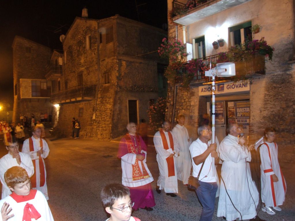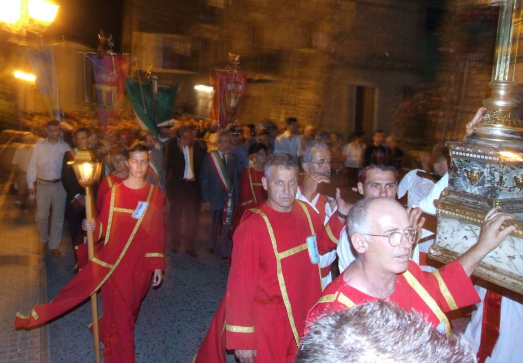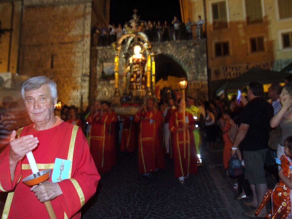 Bei der Prozession am Samstag abend ist dann das Blutwunder fast ein bißchen zur Nebensache geworden. Die Blutreliquie, die an den Zuschauern, fast nur Einheimische, vorbei getragen wird, wird registriert. Viel wichtiger ist, dass man seine Verwandten und Bekannten im Zug entdeckt und ihnen ein paar Worte zuruft. Es sieht auch niemand als schlechtes Omen an, als sich mit lautem Donnern ein Gewitter ankündigt. Immerhin deutet der Pfarrer die Wetterlage richtig. Die Blutreliquie wird fast unbemerkt von den Amasenensi aus der Prozession gelöst und im Laufschritt zur Kirche zurückgebracht. Gerade rechtzeitig, bevor ein Wolkenbruch die Menschenmassen in die umliegenden Bars und Pizzerien treibt. Rechtzeitig zum Feuerwerk sind die Straßen wieder trocken und die alte Blutkonserve wieder in ihrer Nische verstaut. Egal ob sie nun aus Eisenchlorid, rotem Kerzenwachs oder tatsächlich den Körperflüssigkeiten eines vor 1755 Jahren gestorbenen Mannes besteht. Sie bietet den Grund, dass sich alle Bewohner von Amaseno zu einem großen Fest zusammenfinden. Und das Wunder bietet auch Halt in einer Zeit, in der man nicht weiß, ob man im nächsten Jahr noch seinen Arbeitsplatz hat. Ob man im Lotto gewinnt oder Schulden macht. Das Blut des Heiligen Laurentius wird sicher auch zum nächsten 10. August wieder flüssig sein.