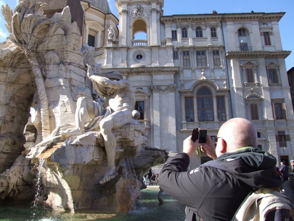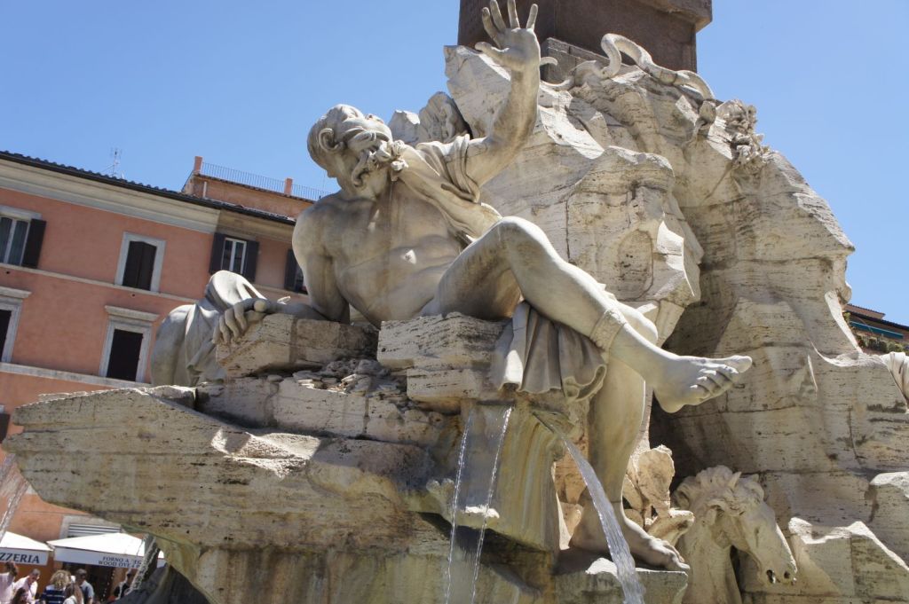 Der Vierströmebrunnen, die Fontana dei Quattro Fiumi, auf der Piazza Navona ist nach dem Trevibrunnen sicher der bekannteste Brunnen Roms und eines der Hauptwerke von Gian Lorenzo Bernini. Dabei war es gar nicht vorgesehen, dass Bernini den Auftrag bekommt. Sein Förderer Papst Urban VIII war gerade gestorben und der neue Papst Innozenz X präferierte andere Künstler. Zudem hatte Bernini gerade Ärger, da sein Glockentürmchen am Petersdom an der Fassade Risse verursachte und daher wieder abgebaut wurde, was Zweifel an den Kenntnissen der Statik des Künstlers aufkommen ließen. Bernini war nicht zum Wettbewerb für den Brunnen vor der Residenz der neuen Papstfamilie eingeladen.