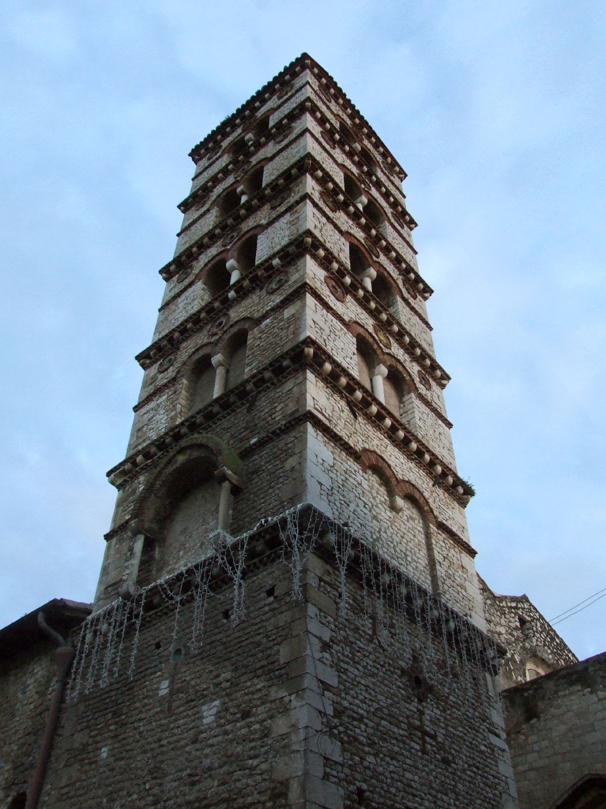 Das Castello ist ein beliebtes Ausflugsziel, jedoch nicht am 31.12., wenn sich jeder auf die Silvesterparty vorbereitet. Daher war die Burg geschlossen. Gelegenheit um der Pfarrkirche Santa Maria Assunta einen Besuch abzustatten, die im 13. Jahrhundert entstand. Die Jungfrau Maria verdrängte eine andere mystische Mutter, Kybele. Die Reste ihres Tempels wurden für ihre Kirche überbaut. Der Stil der Kirche orientiert sich am nahen Zisterzienserkloster Fossanova. Besonders schön ist der Campanile, der, wie im südlichen Latium üblich, mit bunten Keramiktellern geschmückt ist.