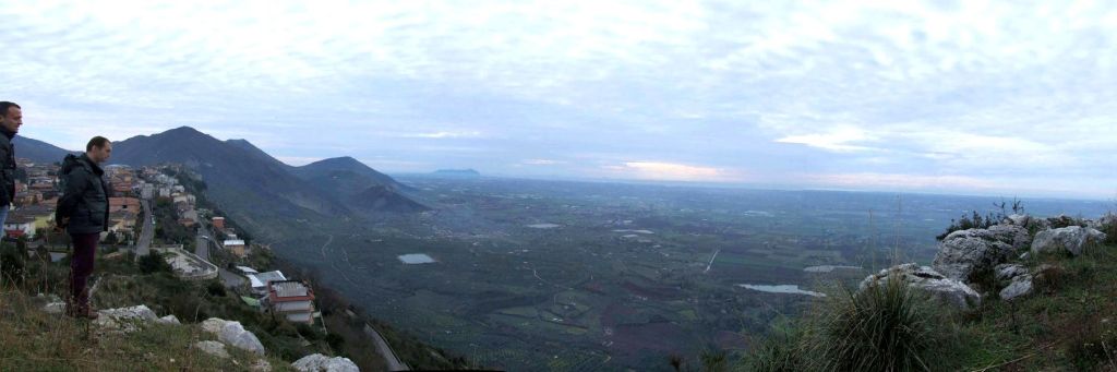 Wer die alte Stadt Norba sucht, muss nur den Gleitschirmfliegern folgen. Die Ausgrabungen der antiken Stadt liegen auf einem Hochplateau, dass 350 Meter steil zur Pontinischen Ebene abfällt. Wenn man sich die Serpentinen zum modernen Dorf Norma hinaufgeschraubt hat, findet man am Ortsrand den Parkplatz, wo sich an schönem Wetter immer die Paraglider-Community trifft, um dann mit den Gleitschirmen in den riesigen Rucksäcken an die Kante des Steilabfalls zu pilgern. Selbst wenn man nicht vorhat sich dort hinunterzustürzen, lohnt sich doch die weite Aussicht. Über die grüne Ebene wandert der Blick zum Meer. Bei guter Sicht sieht man den Monte Circeo, auf dem einst die Zauberin Circe Odysseus verführt haben soll. Dahinter erkennt man die Pontinischen Inseln. Der Historiker Ferdinand Gregorovius hielt 1860 diesen Blick für „Den Anblick eines Gemäldes, eines der schönsten, welches Italien überhaupt besitzt“.