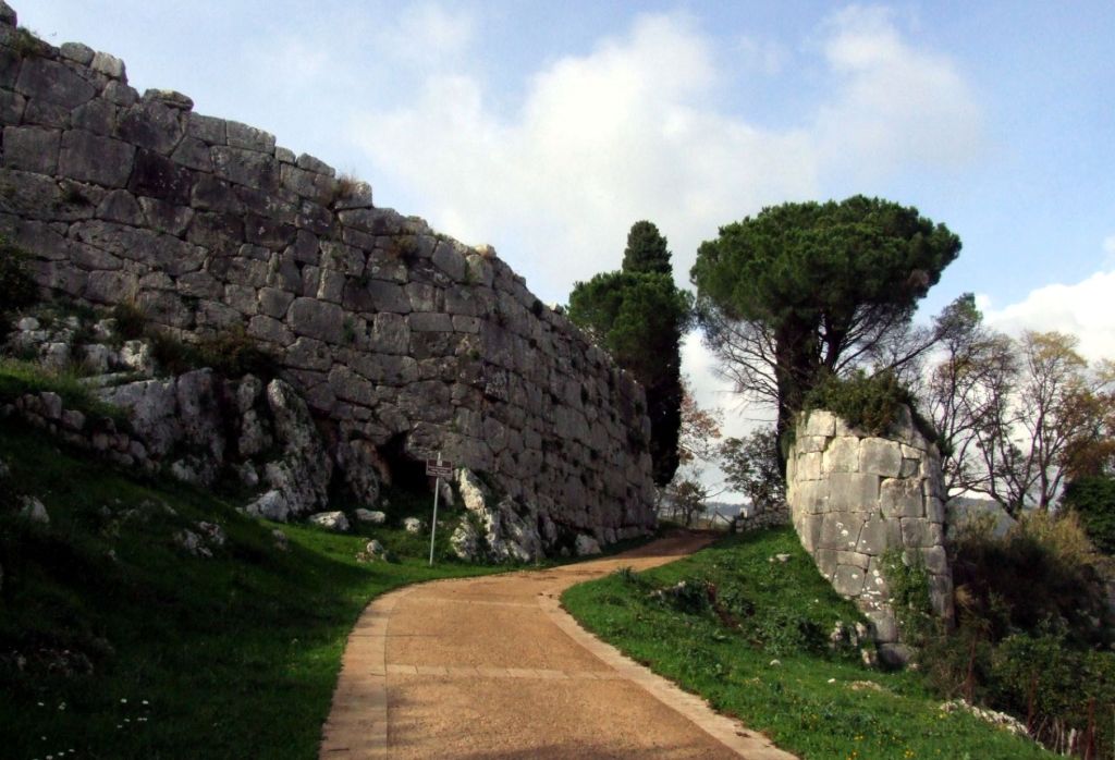 Doch wir sind ja nicht nur wegen der Aussicht gekommen. Oberhalb des Parkplatzes treffen wir auf die Stadtmauer die in Zyklopenbauweise ca. 340 v.Chr. errichtet wurde. Hier öffnet sich die zwölf Meter hohe Porta Maggiore mit einer Art Rundturm in die antike Stadt. Norba war eine Stadt der Volsker, dem südlichen Nachbarvolk der Latiner, die bis ins 4. Jahrhundert v.Chr. mit den Römern im Krieg lagen. Laut dem römischen Historiker Titus Livius wurde Norba bereits 492 v.Chr. römische Kolonie. Wahrscheinlich war dies aber später. Sicher ist, dass es beim Kampf gegen Hannibal bereits treu an der Seite Roms kämpfte. Im Bürgerkrieg des ersten Jahrhunderts v.Chr. setzte man jedoch aufs falsche Pferd und verbündete sich mit dem Konsuln Marius. Dessen Gegner Sulla eroberte jedoch 81 v.Chr. die Stadt durch Verrat. Um nicht in Gefangenschaft zu geraten, sollen die meisten Bewohner Selbstmord begangen haben, in dem sie sich in die Flammen ihrer brennenden Häuser warfen. Erst im Mittelalter wurde das Hochplateau wieder besiedelt. Das heutige Norma wurde jedoch etwas östlich am Ende des Felssporns gegründet.