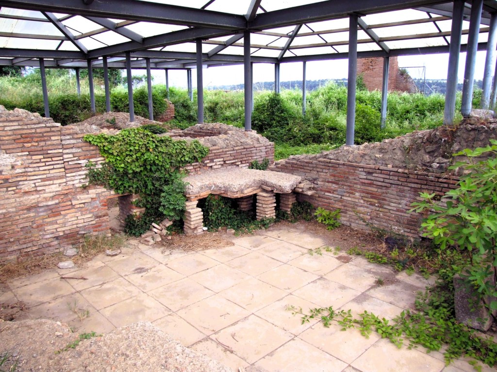 Der Name Ferentium leitet sich möglicherweise vom lateinischen „ferrum“ für Eisen ab. Denn die Eisenvorkommen der Gegend begründeten den Reichtum der Stadt. In römischen Dokumenten begegnet uns Ferentium allerdings erst 123 v.Chr. Ein halbes Jahrhundert später wurde der Ort Municipium und damit begann der urbane Ausbau. Die Stadt hatte alle typischen Einrichtungen einer antiken Stadt, auch wenn noch nicht alles, wie das Forum und das Augusteum das mit 60 Statuen geschmückt war, gefunden wurde. Ausgegraben wurden aber die Thermen, die heute mit einem, sagen wir diskussionswürdigem, Dach geschützt werden. Schön kann man dort die Reste der Hypokaustenheizungen sehen. Der antiken Fußbodenheizung, bei der heiße Luft zwischen einen doppelten Boden geleitet wurde.