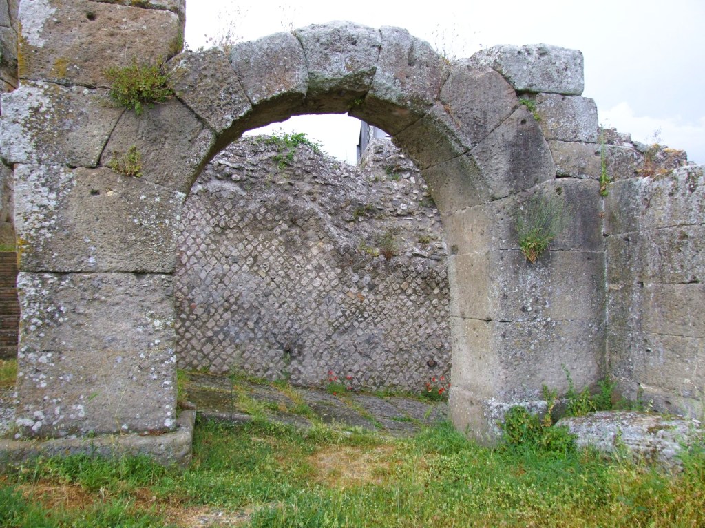 Das Wahrzeichen ist aber das Theater. Im Mittelalter wurde es in die Befestigung der Stadt einbezogen und hat so den Lauf der Zeiten am besten überstanden. Es stammt aus dem 1. Jahrhundert n.Chr. und noch heute kann man von den Sitzreihen über das Bühnenhaus hinweg zu den Monti Cimini schauen und sich vorstellen wie einst römische Schauspieler das Volk mit Tragödien und Komödien unterhielten. 1901 fand der Archäologe Rossi Danielli, der als Wiederentdecker der Stadt gilt, im Bühnengraben die Statuen der neun Musen, die einst die Bühnenfassade schmückten. Man kann sie heute im Museum der Rocca Albinoz in Viterbo bewundern. Am charakteristischsten aber die umlaufenden Arkaden aus Peperinotuff, die einst das obere Stockwerk trugen.