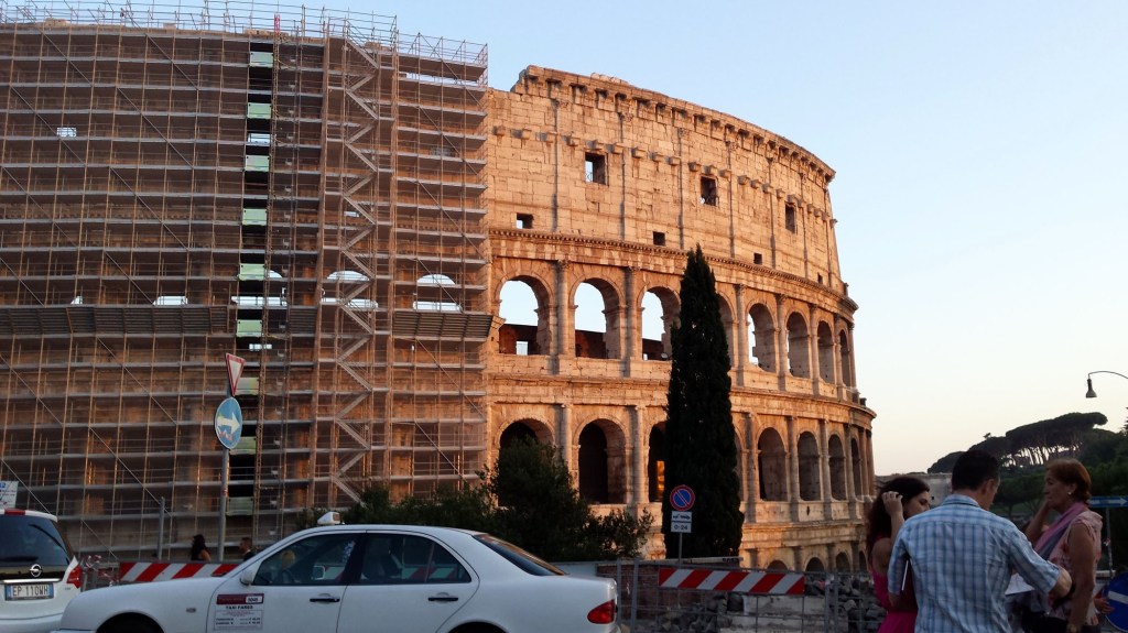 Inzwischen ist die erste Restaurierungsphase am Kolosseum fast beendet. Am 7. Juli 2014 sollen die ersten fünf Arkaden von den Gerüsten befreit werden. Wir können gespannt sein, wie sie in der Sommerhitze blitzen. Das Kultusministerium verspricht, dass der Stein genauso wie vor 1937 Jahren, bei der Erbauung in honiggelb leuchten soll. Das Gerüst wird dann weiter um das Amphitheater wandern.