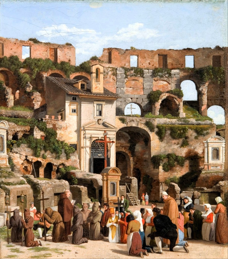 523 haben wir zum letzten Mal die Nachricht, dass das Kolosseum für Tierhetzen, die Venationes, genutzt wurde. Danach verfiel es und wurde als Steinbruch verwendet. Im Mittelalter wurden jedoch auch Wohnungen eingebaut und es wurde sogar von der Familie Frangipane als Festung genutzt. 1675 beauftragte Papst Innozenz XI den Architekten Carlo Fontana eine Kirche in der Arena zu planen um an die vermeintlich hier hingerichteten Christen zu erinnern. Der Plan wurde nie verwirklicht, aber seither stoppte der Abbau, da das Kolosseum nun den Märtyrern geweiht war. Ein Kreuz am Rande der Arena erinnert noch heute daran und der Papst geht jedes Jahr an Karfreitag hier einen Kreuzgang ab. Seit dem Jahr 2000 ist es außerdem ein Denkmal gegen die Todesstrafe. Immer wenn ein Todesurteil irgendwo auf der Welt ausgesetzt wird, wird es bunt erleuchtet.