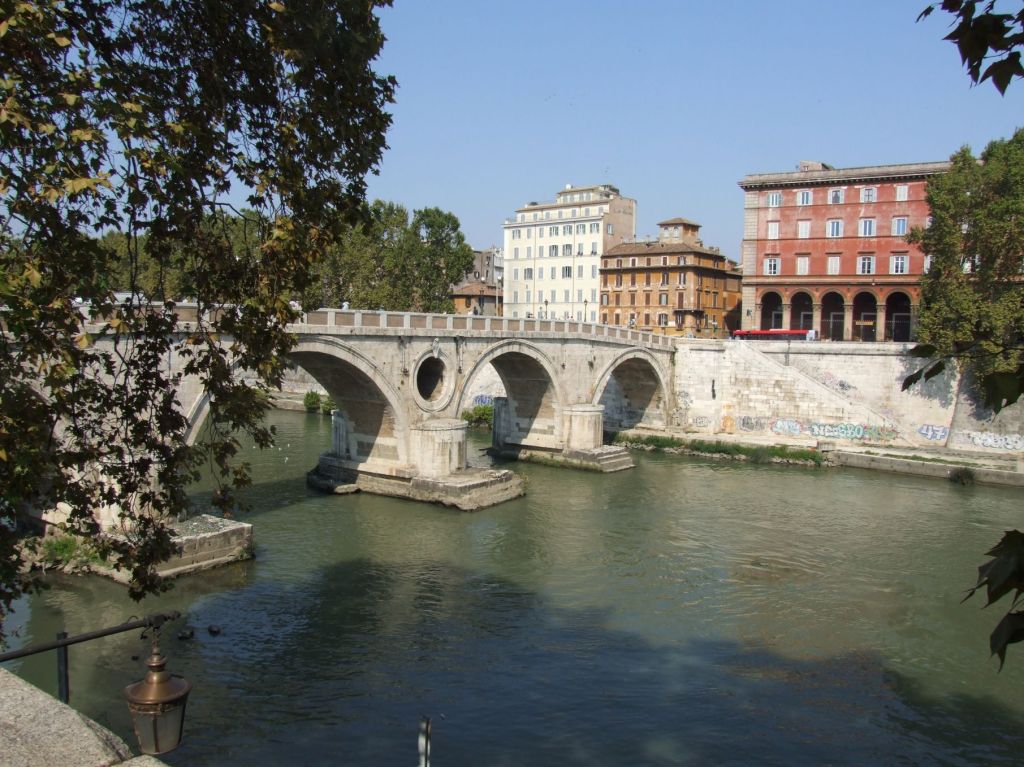 Stadtplanung war und ist in Rom immer eine schwierige Angelegenheit. Meist findet sie erst statt, wenn es wieder heißt: „Oh Schreck, demnächst gibt es wieder ein Heiliges Jahr. Wo tun wir nur die ganzen Pilger hin.“ So war das auch, als unter Papst Sixtus IV. das Heilige Jahr 1475 nahte. Julius II hatte schon mit der nach ihm benannten Via Giulia vorgearbeitet. Die schnurgerade Straße, die die Pilgermassen Richtung Vatikan kanalisieren sollte. Doch eine Engstelle war der Tiber. Seit dem Ende des Römischen Reichs hatte man keine Brücken mehr gebaut und die die aus der Antike übrig gebliebenen waren eine nach der anderen eingefallen.