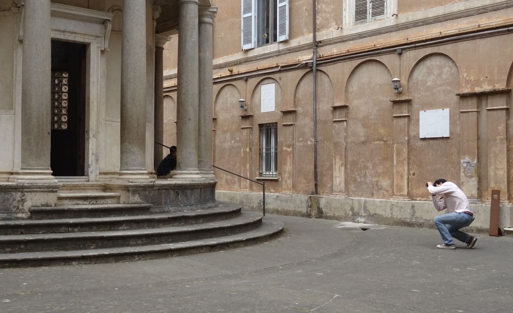 Im zweiten Stock löste sich Bramante jedoch von der Antike und schuf einen Baukörper, der zum Prototyp der Architektur wurde. Gerahmt von einer Balustrade wächst der Tambur empor, abwechselnd mit eckigen und abgerundeten Nischen gegliedert. Und als Abschluss die schlichte halbrunde Kuppel, die die Idee Bramantes für die Kuppel des Petersdoms vorausnahm. Alles in einer ruhigen Harmonie, die so selbstverständlich wirkt, als könnte kein anderer Bau hier stehen.