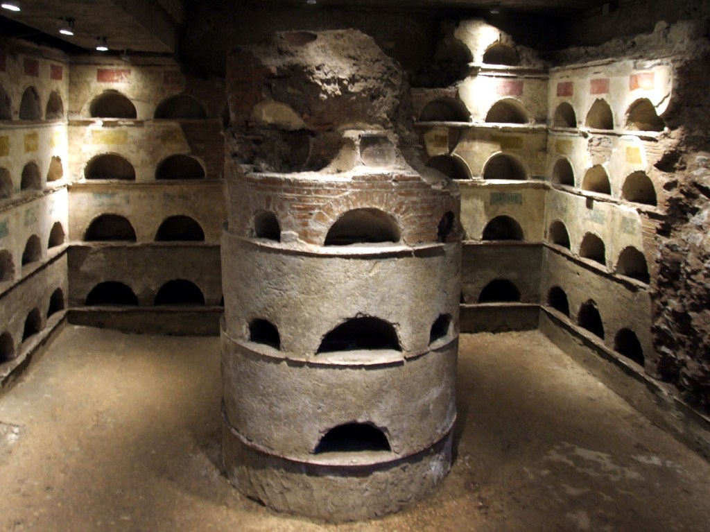 Bei der archäologischen Untersuchung 1926 stieß man außerdem auf eine kleine Katakombe sowie ein großes unterirdisches Columbarium. Eine große Anlage für Urnenbestattungen. Eigenartigerweise wurden die Nischen der Urnen nie beschriftet, obwohl Namensfelder angelegt wurden. Wahrscheinlich wurde dieses Grab aus unbekanntem Grund nie genutzt. Weitere antike Gräber befinden sich in der Nähe. Das Schönste ist sicher das Columbarium des Pomponius Hylas.