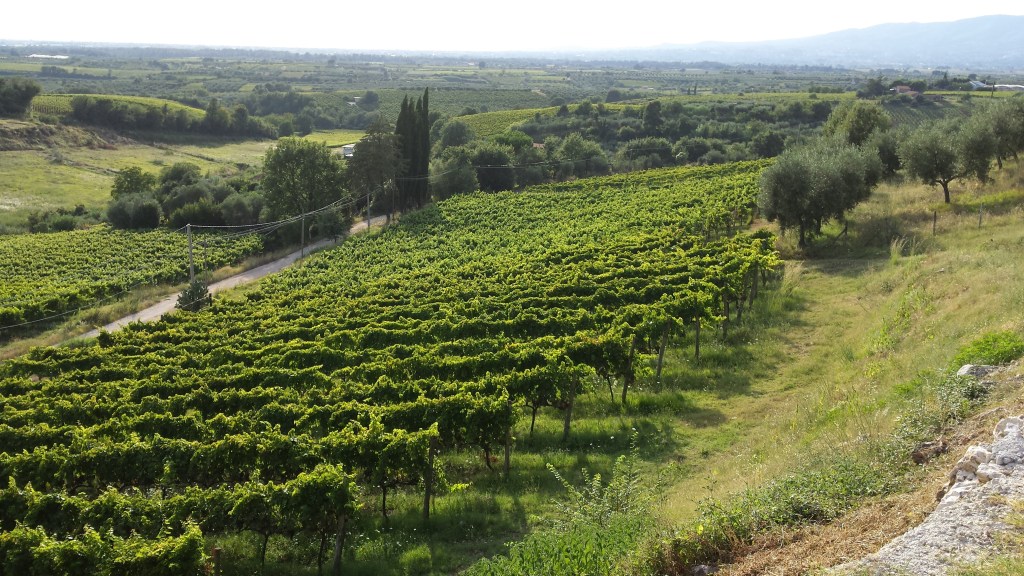 Aber Cori ist auch ein alter Weinort. Schon Plinius, der Naturforscher, der beim Vulkanausbruch von Pompeji ums Leben kam, erwähnt den Wein, der vom Abhang der Berge bis in die Pontinische Ebene angebaut wird. Wir haben das Weingut Carpineti besucht, das moderne Technik mit traditionsreichen Weinen verbindet. Das Weingut wurde 1990 von Marco Carpineti als biologisch wirtschaftender Betrieb gegründet. Sein Sohn Paolo führt uns durch den Betrieb. Die Winzer verzichten nicht nur auf Chemie im Anbau, sie arbeiten auch daran die Traktoren durch Arbeitspferde zu ersetzen. Die Abfälle des Betriebs werden als Biomasse zur Energieerzeugung genutzt. Gleichzeitig arbeitet das Weingut zusammen mit der Universität Rom an einem Programm, dass die Weingärten mittels Drohnen zentimetergenau klimatisch überwacht.