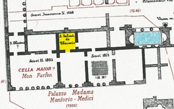 Das kleine Kirchlein San Salvatore, von den Römern wegen seiner Dimension auch San Salvatorello genannt blieb in französischem Besitz, obwohl es nach und nach vom Palazzo Madama umbaut wurde. Es soll der Legende nach bereits von Papst Silvester im 4. Jahrhundert gegründet worden sein. Wahrscheinlicher ist jedoch das es im 6. Jahrhundert entstand, da zur Zeit von Silvester in den Thermen noch reger Badebetrieb war. Vermutlich wurde es in einen Nebenraum der Thermen, vielleicht in einen Umkleideraum, eingebaut. San Salvatore war keine Pfarrkirche, sondern nur ein Oratorium, dass zu San Luigi dei Francesi gehörte. Nach 1903 wurde die Kirche für die Erweiterung des Senats abgerissen. In der Via del Salvatore, deren Name noch an sie erinnert sah man noch lange das bescheidene Kirchenportal (siehe unten) in der Fassade des Senatgebäudes. Nach dem Abbruch des Gotteshauses wurden die Kunstwerke der Kirche nach San Luigi übertragen.