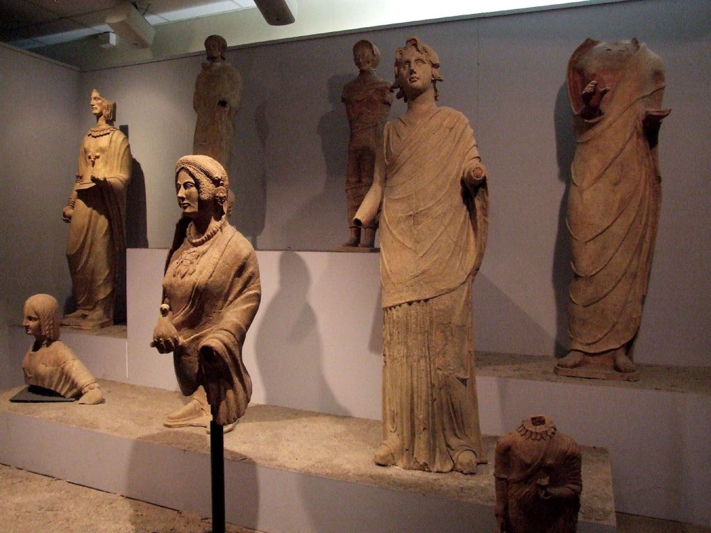 Daneben ein Depot mit zahlreichen, vor allem Mädchen darstellenden, Terrakottafiguren, die Hauptausstellungsstücke des multimedial modern gestalteten Museums sind. Die eindrucksvollste sieht man gleich am Eingang des 2005 eröffneten Museums, die Göttin selbst, die Minerva Tritonia. Die archaische Figur wird auf das fünfte vorchristliche Jahrhundert datiert. Die hagere Figur hat einen griechischen Helm auf und eine Gorgon auf der Brust. Um ihren Körper windet sich eine dreiköpfige Schlange. Die detailreich gestaltete Statue führt den Besucher in eine ferne mystische Vergangenheit.