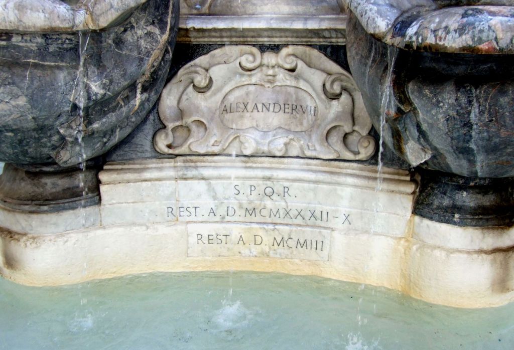Erst im folgenden Jahrhundert kam ein Bildhauer auf die Idee den Brunnen zu ergänzen. Wir wissen nicht, wer die Restaurierung 1658 leitete. Vielleicht tatsächlich der große Bernini. Bernini war bekannt für seinen Humor und seine Ironie. Und er verwendete Tiere, die nicht zum klassischen Repertoire für Bildhauer gehörten.