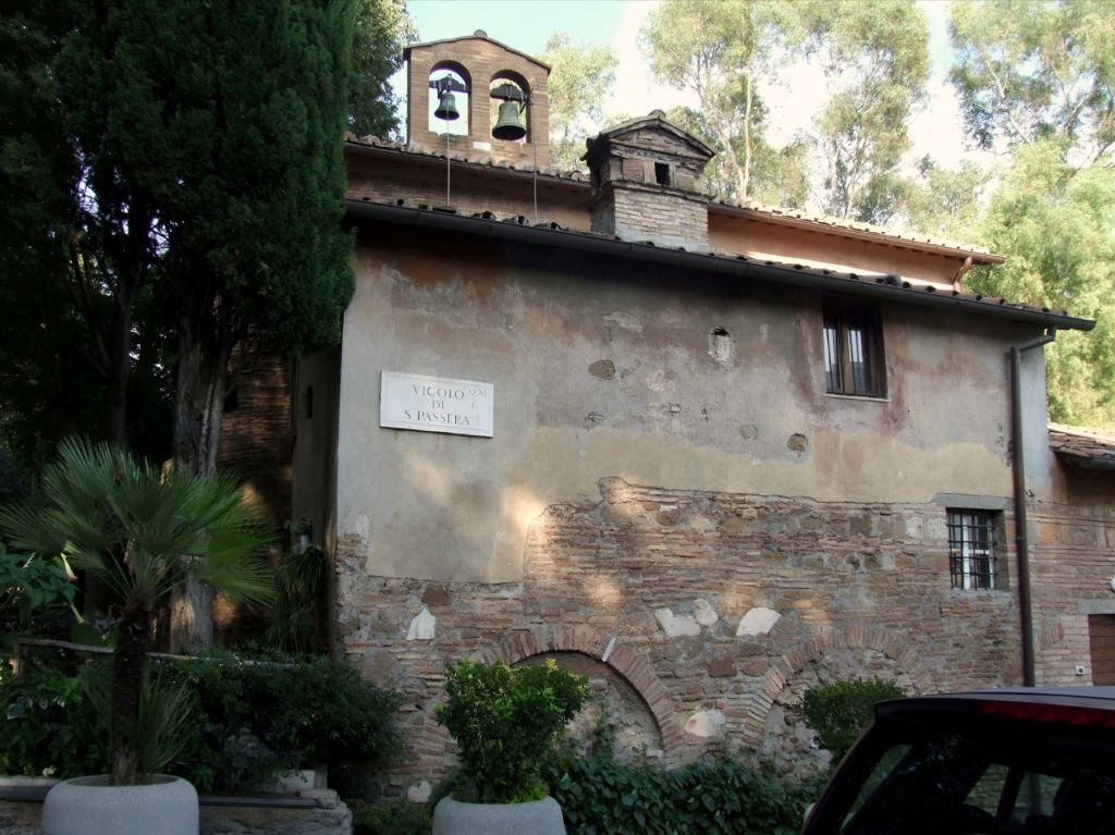 Ich muss zugeben, dass als erstes der Name von Santa Passera meine Aufmerksamkeit einfing. Denn wer die römische Umgangssprache kennt, weiß, dass mit „Passera“ nicht nur ein weiblicher Spatz, sondern auch das weibliche Geschlechtsteil bezeichnet wird. Das soll der offizielle Name einer Kirche der heiligen katholischen Kirche sein? Im Ernst? Es ist tatsächlich offiziell der Name dieser Kirche. Allerdings behauptet niemand, dass es jemals eine Heilige mit diesem anzüglichen Namen gegeben hat.